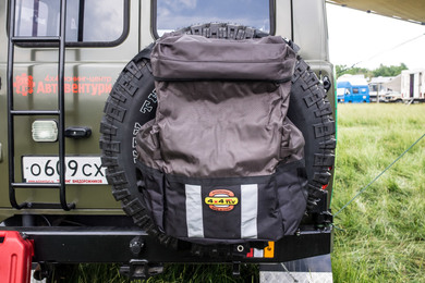 Как правило это сумку используют для перевозки мусора от места стоянки до ближайшей помойки. Крепится на запасное колесо.