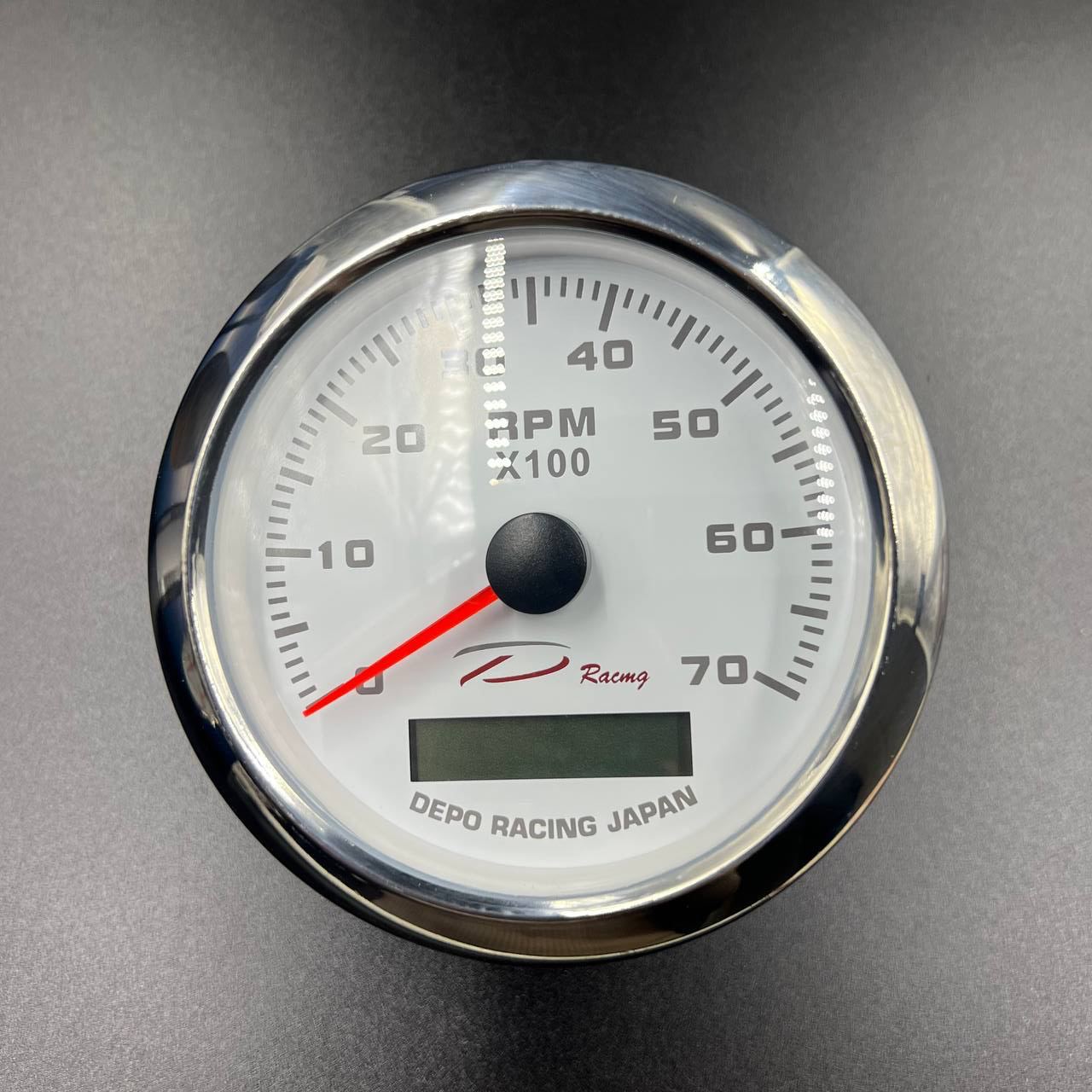 Тахометр 0-7000 об/мин д.85мм (белый, хромированный ободок) (DEPO)