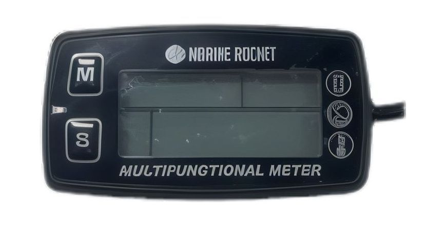 1. Дисплей ЖК-дисплей: угол обзора 180 градусов. Диапазон температурной стойкости ЖК-дисплея: от -20 °C до 75 °С. 2.Запись общего количества рабочих часов, диапазон: 0-99999 ч, не сбрасывается. Начальная настройка времени счетчика моточасов, диапазон: 0-99999 ч, может быть очищена. Но если начальная настройка времени часа не может быть установлена снова после 1 часа работы двигателя. Запись двух групп частичных часов, диапазон: 0-99999 ч, сбрасывается. Разрешение синхронизации: 1 мин при 0,0-9999 ч59 мин, 0,1 ч при 10000-99999 ч, 1 ч при 100000-999999 ч. 3. Функция напоминания о техническом обслуживании Одна группа напоминания о техническом обслуживании, диапазон настройки ВЫКЛ/1-2000 ч. Когда время обратного отсчета достигнет 0, ЖК-дисплей начнет мигать, отображая значок SVC/SVC2, а красная подсветка начнет мигать для оповещения. 4. Функция RPM После непрерывного обнаружения сигнала зажигания бензинового двигателя в течение lс, он отображает текущие RPM. 9 видов настройки: 1PlR, 1P2R, 2PlR, 3PlR, 3P2R, 4PlR, SP2R, 6PlR, 8PlR Диапазон измерения: Rl: 0-6000 об/мин, R2: 0-12000 об/мин, R3: 0-18000 об/мин, R4: 0-25000 об/мин. Точность измерения: +/- SORPM. Частота обновления: 0.Ss/ls. 5. Предупреждение о превышении скорости: диапазон настройки 0FF/100-25000 об/мин. Текущие об/мин, значок оповещения и красная подсветка мигают для оповещения. Запись МАКС об/мин во время частичной работы, она будет отображаться для Ss при выключенном двигателе Запись истории МАКС об/мин, нажмите кнопку для просмотра. Запишите количество рабочих оборотов двигателя Запишите количество рабочих оборотов двигателя, диапазон подсчета: 0--999999. После непрерывного обнаружения сигнала зажигания бензинового двигателя в течение более 10 секунд, он запишет доступный один раз. 6. Функция часов Режим часов: 24H. При обнаружении работы двигателя он отобразит текущие обороты в минуту, при обнаружении выключенного двигателя он отобразит часы. 7. Подсветка Цвет подсветки: DSP1: зеленый; DSP2: режим RPM: красный, режим часов: белый. Подсветка имеет 3 варианта настройки: ВКЛ, ВЫКЛ, АВТО. 8. Функция выключения Нажатие кнопки выключает ЖК-дисплей для экономии заряда внутренней батареи. ЖК-дисплей отобразится, если сигнал двигателя будет обнаружен непрерывно более 85 раз или нажмите кнопку. 9. Питание Внутренняя батарея, сменная, CR2450, 540 мАч. Срок службы: при выключенной подсветке и среднем числе оборотов 4000 об/мин срок службы батареи может достигать шести лет. (нормальная работа 8 часов в день) Параметр элемента Степень водонепроницаемости IP67 Вес 80г