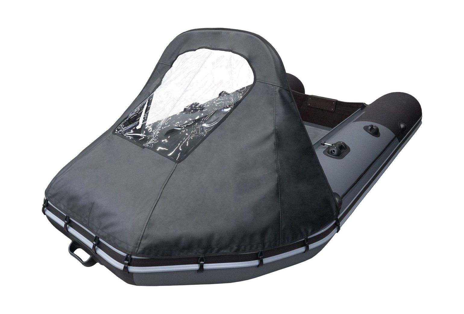 Тент носовой с окном на надувную лодку ПВХ предназначен для защиты от ветра и брызг пассажиров лодки. Изготавливается компанией "Мастер лодок" из ткани ПВХ. Имеет разборную каркасную дугу из дюралюминиевой трубы диаметром 16 мм со штекерной системой сборки. Тент устанавливается на борта лодки Таймень NX 2800, 2900, 3200, производства компании "Мастер лодок", при помощи шайб на концах каркасной дуги и закрепляется на привальном брусе при помощи крючков. В комплект поставки входит тент, дуга каркаса, бортовые крепления каркаса, клей и рем.комплект, руководство по эксплуатации, сумка-чехол.