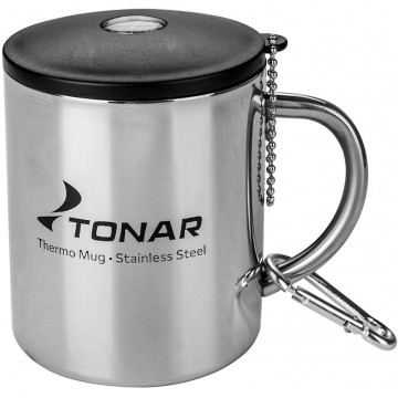 Термокружка TONAR оснащена двойными стенками и выполнена из высококачественной нержавеющей стали, что позволяет сохранить температуру напитков долгое время.