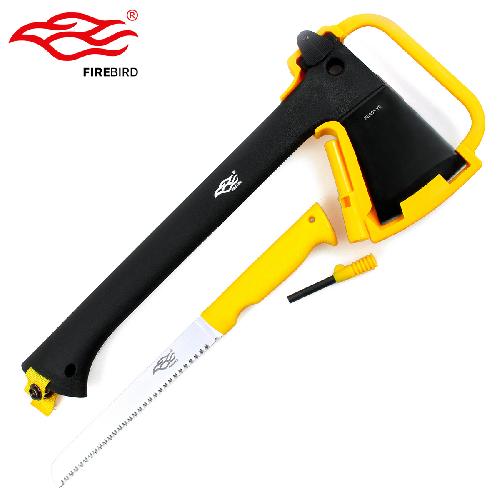 Описание топора Firebird FSA01-YE:Практически любой отдых на природе не обходится без костра. И чтобы не остаться без огня даже в той ситуации, когда мелкого хвороста попросту нет или собирать его нецелесообразно из-за быстрого сгорания, необходимо обязательно взять с собою инструменты для заготовки дров. Модель FSA01-YE, выпущенная под брендом Firebird, - именно тот инструмент, который поможет заготовить необходимое количество дров. Это комплект, состоящий из топора, пилы и огнива, которые компактно помещаются один в другой и поэтому занимают минимальное количество места в рюкзаке. Основным из этих инструментов является топор: именно он самый крупный по размеру. Длина данного инструмента составляет 34,7 см. Топорище сделано из стали 3CR13, которая дополнительно покрыта темной нестирающейся краской. Это покрытие служит защитой для металла от коррозии, а заодно делает внешний вид топора более современным и привлекательным. Ручка топора сделана из особой разновидности пластика, созданной на основе стекловолокна и нейлона. Это очень прочный, хотя и совсем легкий материал. Внутри ручка сделана пустой, чтобы можно было хранить в ней второй компонент данного набора — пилу. Размер пилы равен 30 см, что включает в себя как полотно, так и ручку. Она отлично подходит для распила веток среднего размера, работать с которыми топором по каким-либо причинам не удобно. Материалы для изготовления пилы производители взяли те же, что и для топора (за исключением того, что лезвие сохранило естественный цвет металла), а потому она является действительно качественным инструментом. Третий инструмент в наборе — огниво. Оно совсем небольшое, но может оказаться неоценимо полезным в том случае, если спички промокли или зажигалка сломалась и нет иной возможности добыть огонь. Огниво хранится в специально отведенном для этого месте на защитном чехле для топора (изготовленном из пластика). Особенности: - комплект из топора, пилы и огнива - инструменты сделаны из стали 3CR13 - рукоятки выполнены из стеклонаполненного нейлона - вес всего набора равен 943 грамма - для топора предусмотрен пластиковый чехол - ярко-желтые элементы хорошо заметны - в рукоятку топора можно продеть темляк. Гарантия: Продолжительность гарантии для топора Firebird FSA01-YE составляет один год.