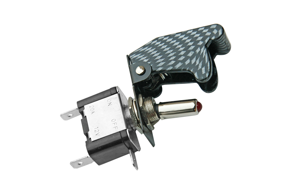 Тумблер имеет функцию подсветки. Для предотвращения произвольного переключения тумблера применяются защитные крышки, которые изготавливаются в различной цветовой гамме. Цвета крышки – карбон.