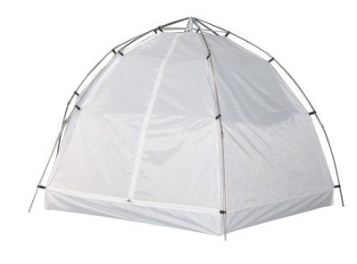 Форма тента полностью повторяет форму палатки и дублирует все необходимые элементы - вытяжные клапаны, внутреннюю юбку и дверь и окошко. Тент легко крепится к каркасу изнутри на уже установленную палатку. Между внутренним и внешним тентом образуется воздушное пространство около 5 см и служит хорошим теплоизолятором.