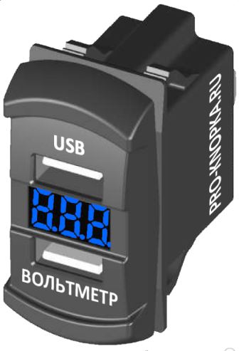 картинка Вольтметр +2 USB Pro-Knopka синий,тип "переключатель"