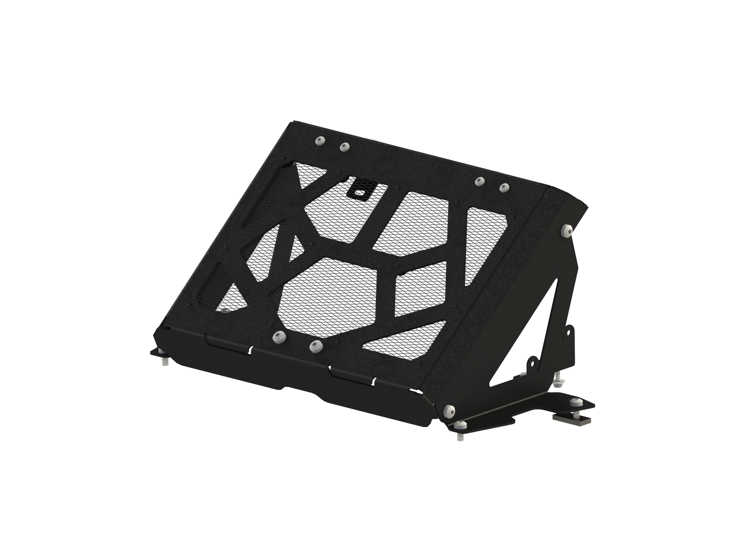 Вынос изготовлен из легкого и прочного алюминия с черной порошковой покраской, сетка из нержавеющей стали защищает радиатор от повреждений и обеспечивает свободный обдув. В комплект поставки входит все необходимое для подключения радиатора.