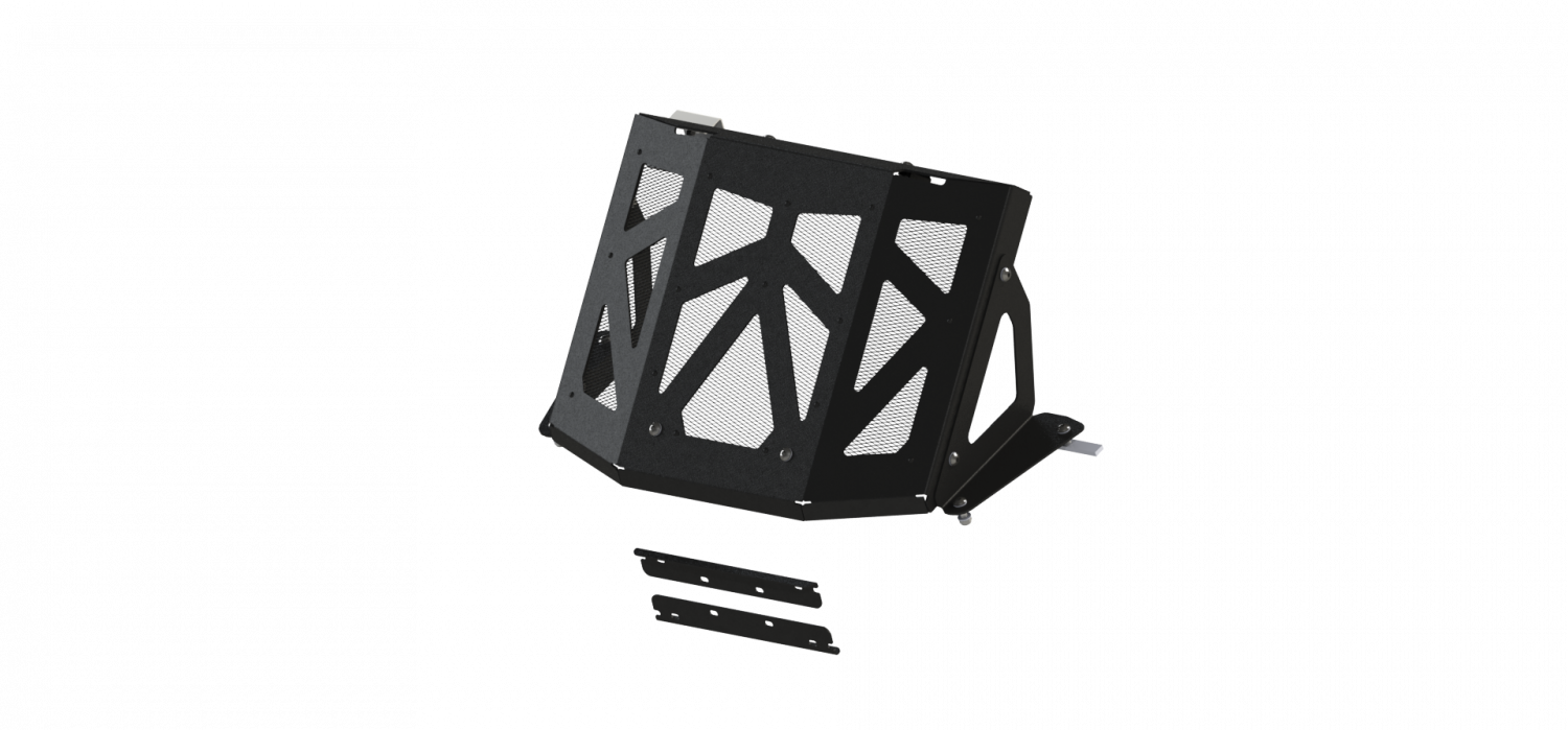 Вынос изготовлен из легкого и прочного алюминия с черной порошковой покраской, сетка из нержавеющей стали защищает радиатор от повреждений и обеспечивает свободный обдув. В комплект поставки входит все необходимое для подключения радиатора.