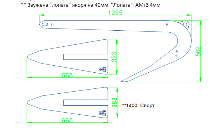 ** Заужена "лопата" якоря на 40мм