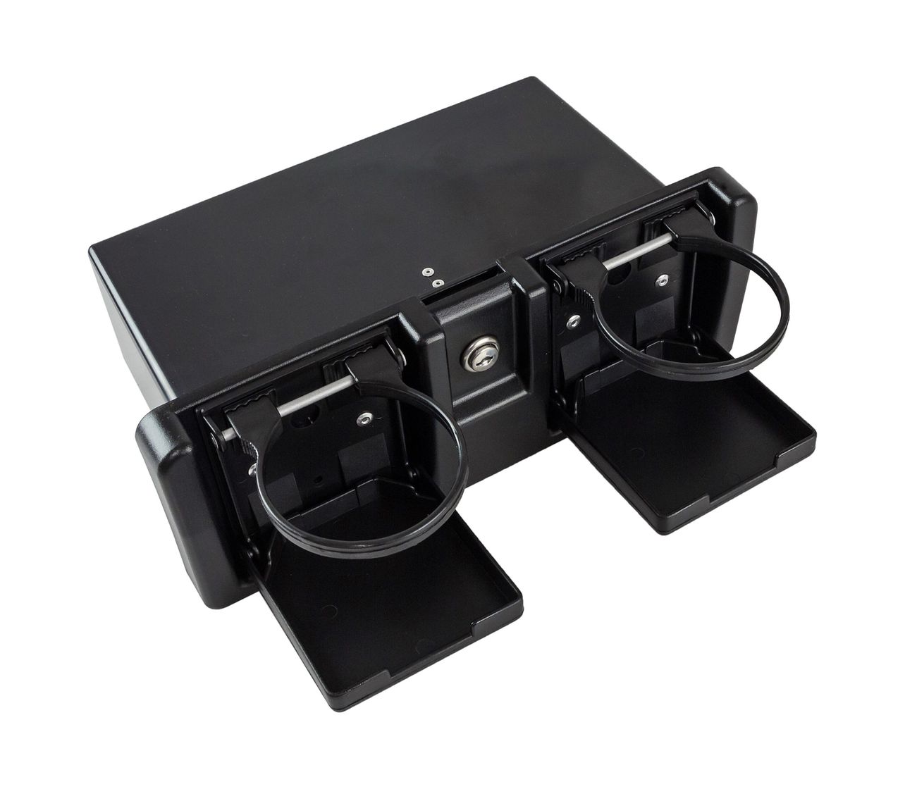 Ящик для мелочей врезной, с замком и складным подстаканником, черный