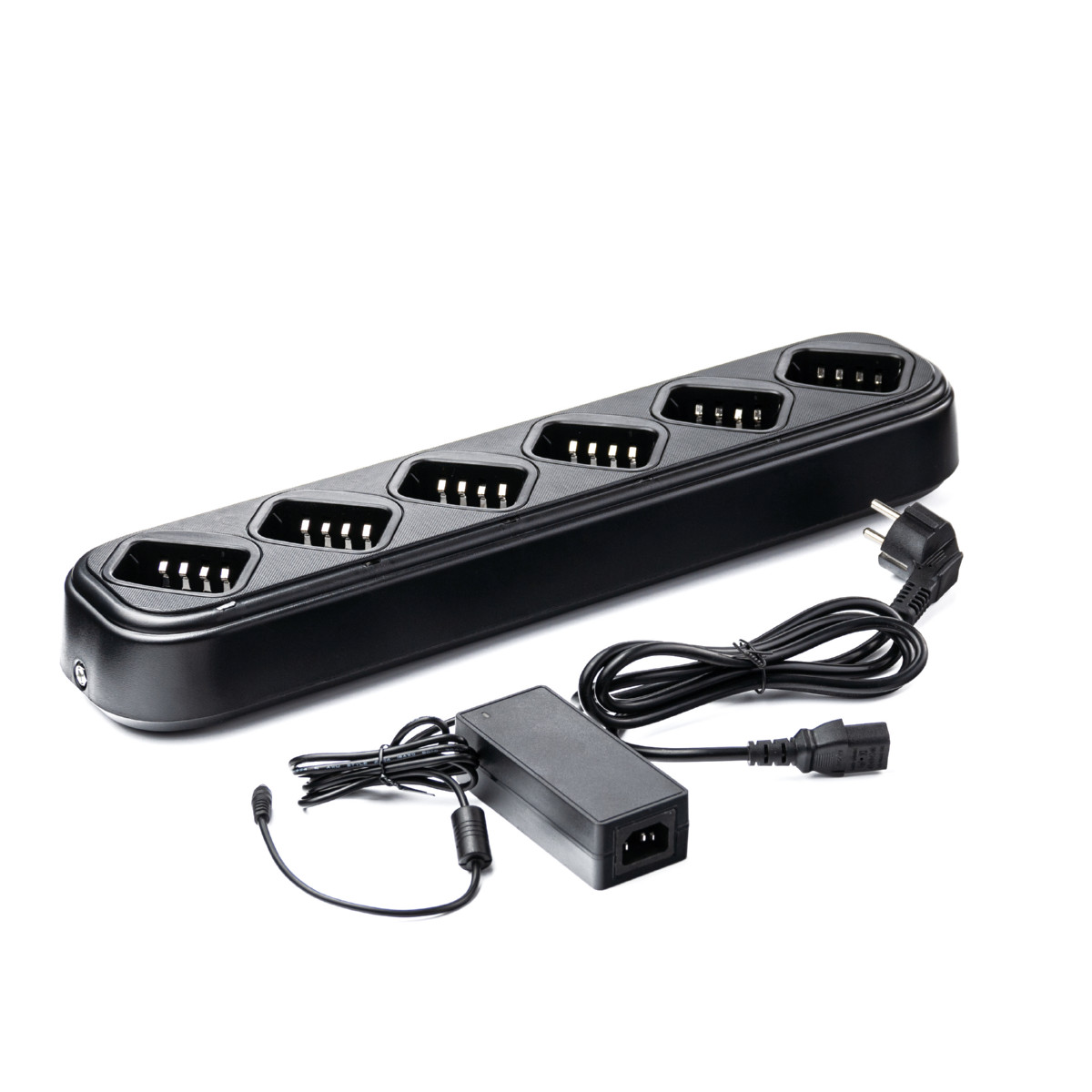 Многопозиционное зарядное устройство ТЕРЕК 6П-ЗУ для радиостанций серии РК-3ХХ. Компактное размещение в процессе зарядки АКБ. Это устройство позволяет заряжать аккумуляторные батареи радиостанций ТЕРЕК серии РК3хх как Литий-Ионного (Li-Ion) так и Литий-Полимерного (Li-Pol) химического типа с поддержанием оптимальной вольт-амперной характеристики процесса зарядки, с учетом степени износа АКБ и температуры окружающего воздуха. Каждая зарядная ячейка снабжена светодиодным индикатором состояния. Зарядное устройство ТЕРЕК 6П-ЗУ снабжено системой интеллектуальной компенсации тока саморазряда АКБ, что позволяет оставлять в устройстве заряжаемую батарею не ограничено долго без риска ее повреждения чрезмерным зарядом или разрядом. Шестипозиционное зарядное устройство ТЕРЕК 6П-ЗУ поддерживает работу с АКБ следующих моделей радиостанций: Терек РК-301#01 Терек РК-301#02 Терек РК-322-2Д Терек РК-322