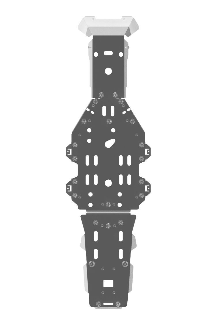Установка в штатные места рамы. Обнижения под головки болтов в местах крепления. Резиновые демпферы в местах прилегания к раме. Предусмотрены отверстия для слива масла и для установки переходной площадки отвала.; Материал: алюминиевый сплав с прозрачным анодированным покрытием; Толщина: 4 мм; Для моделей: Stels